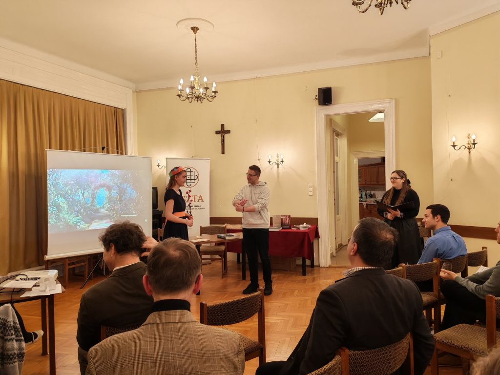 A tudást azonban nem elég megszerezni, át is kell adni – a keresztény hitre pedig fokozottan igaz ez a megállapítás. Boros Júlia és Orosz Virág előadásukban a hitüket megvalló, azt felvállaló influencereket mutatták be az Egyesült Államok és Magyarország viszonylatában. A hazai helyzet kapcsán értékelték a TikTokon jelen lévő csoportokat a 777 blogtól a katolikus egyház közösségimédia-felületein át az egyéni tartalomgyártókig, majd vázolták saját közösségimédia-elképzelésüket is. Előadásuk végén kiemelték: céljuk, hogy az így kialakuló – már hívő és kereső fiatalokat egyaránt megszólító – online követői táborból offline közösséget is szervezzenek.